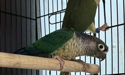 tame green cheek conure pair